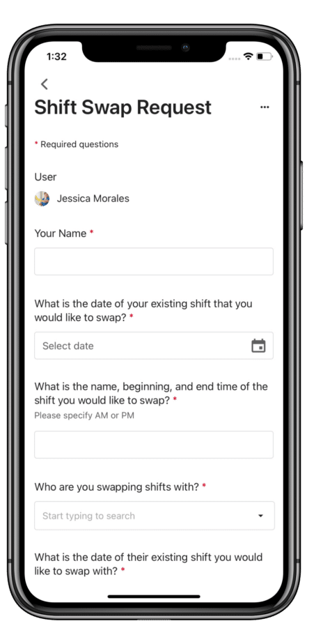 - Easily submit shift swap requests