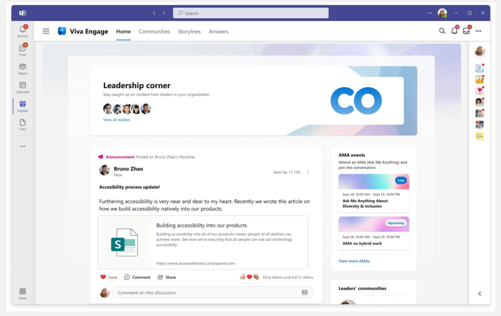 10. Viva Engage: Best for Large, Community-Focused Organizations