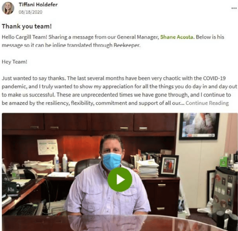 Let’s take a closer look at how Cargill was able to better connect, engage, and inform their frontline employees using  Beekeeper’s mobile collaboration platform.