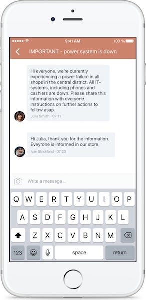 - Keep all of your employees connected through a variety of organizational and operational communication features, from group chats to 1:1 messaging