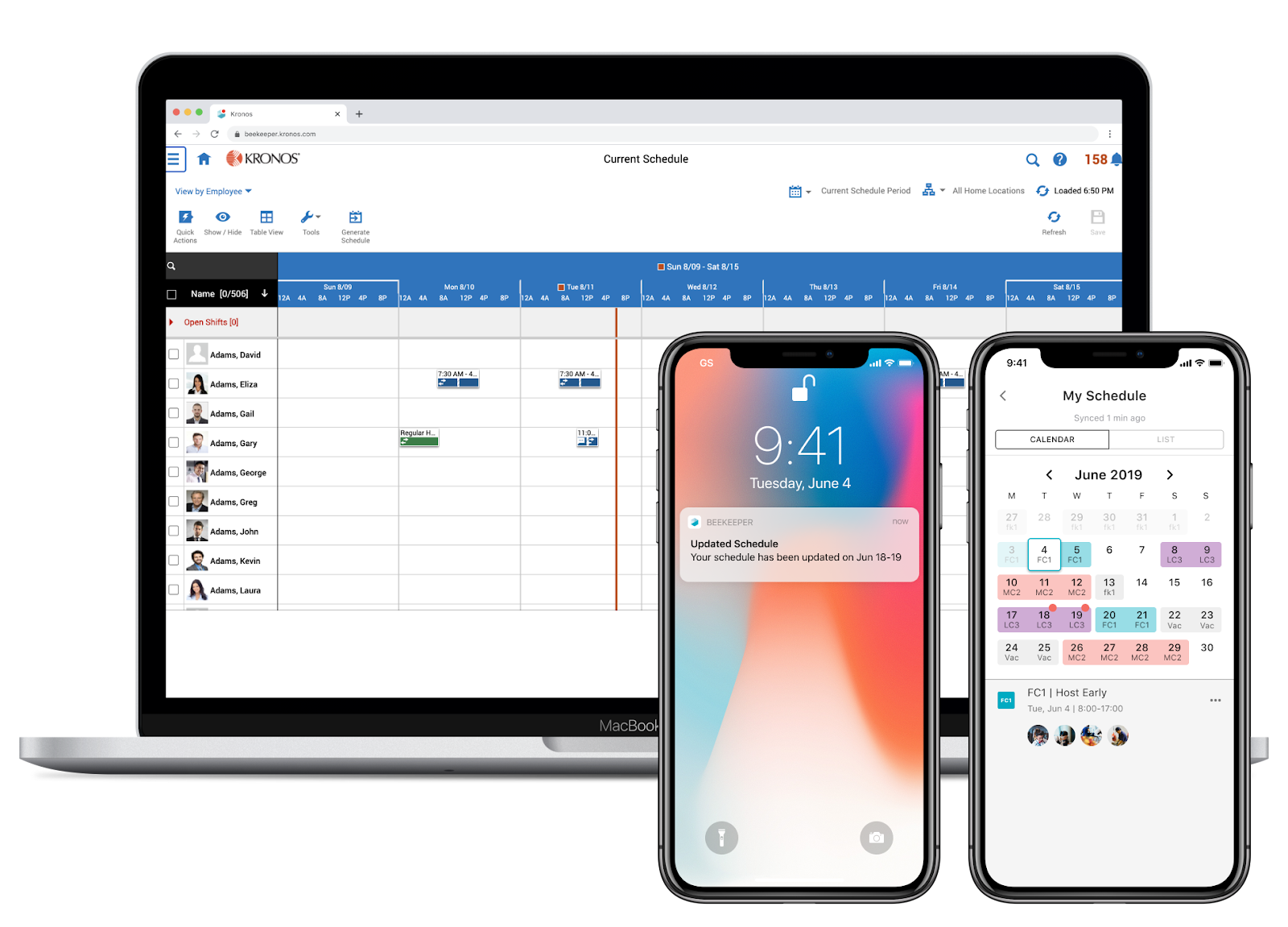 Sie nutzen bereits ein anderes digitales Tool zur Schichtplanung? Kein Problem! Beekeeper kann als zentrale Plattform für Mitarbeitende mit und ohne PC-Zugriff sowohl für die interne Kommunikation als auch für die Online-Schichtplanung genutzt werden. Die Integration für Schichtverwaltung ermöglicht den Import von Excel-Dienstplänen sowie die Integration mit UKG Ready oder UKG Dimensions sowie weiteren Schichtplanungssystemen und stellt allen Mitarbeitenden ihre personalisierten Dienstpläne mobil zur Verfügung.
