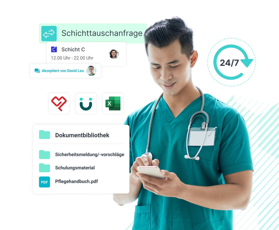 Mit Beekeeper bleibt die gesamte Belegschaft auf dem Laufenden. In der App lässt sich zum Beispiel das Schichtmanagement integrieren – aus schwarzem Brett und Zettelwirtschaft werden optimale Prozesse.