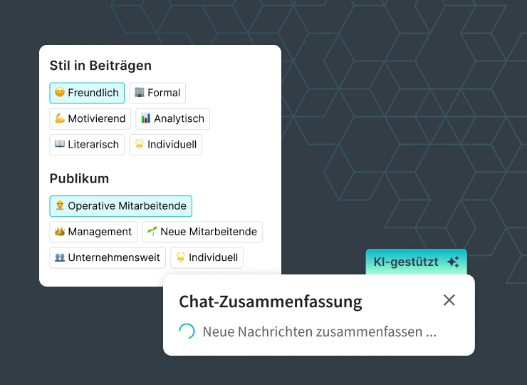 Verbessern Sie die Kommunikation durch KI-generierte Inhaltserstellung und Chat-Zusammenfassungen.