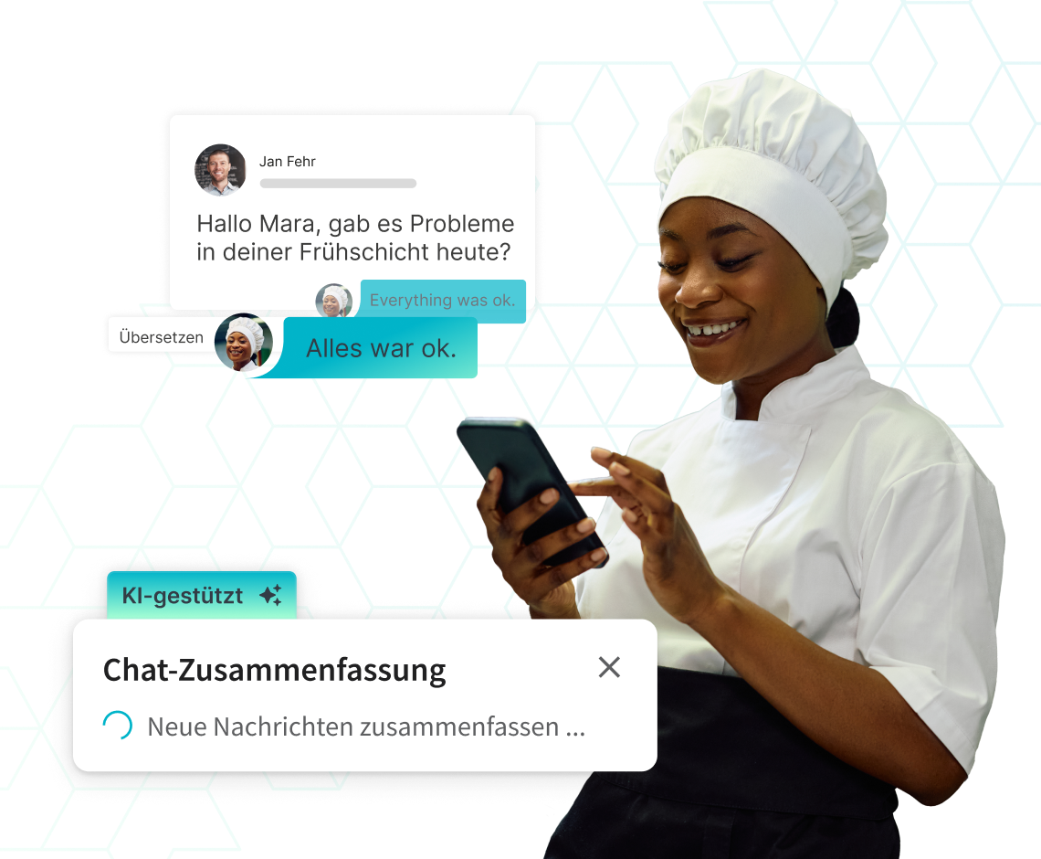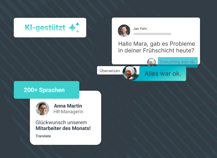 Die KI in Beekeeper verbessert das Erlebnis für Non-Desk-Mitarbeitende. Echtzeit-Übersetzungen und Chatbots helfen Teams, schneller und smarter zu arbeiten.