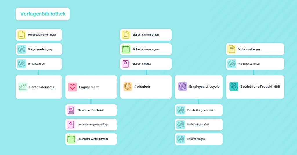 Nutzen Sie vorgefertigte Vorlagen für Onboarding, Freistellungsanträge, Schichttausch und mehr. Beekeepers Vorlagenbibliothek sorgt für Konsistenz, schnelle Einrichtung und hohe Effizienz.