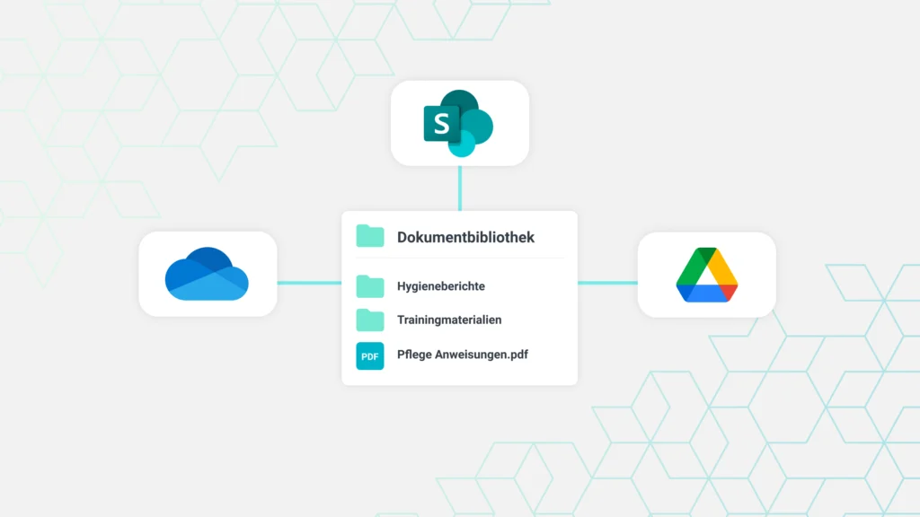 Halten Sie Dateien für Mitarbeitende mit Beekeeper, SharePoint, OneDrive und Google Drive stets aktuell. Das bedeutet automatisierte Dokumentenverwaltung statt manueller Updates – und Sie sparen Zeit.