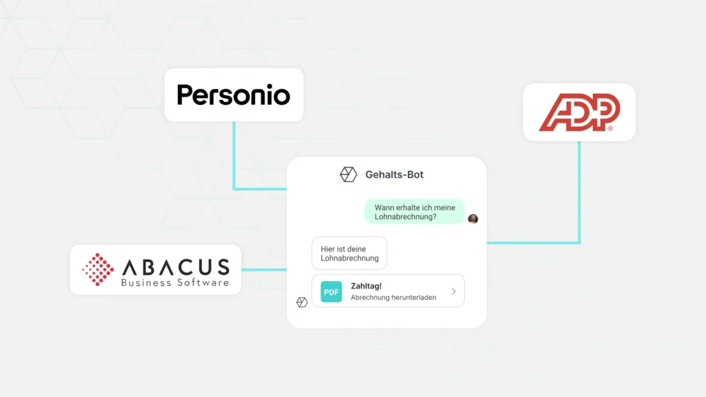 Optimieren Sie die Gehaltsabrechnung mit ADP, Abacus oder Personio. Mitarbeitende erhalten Gehaltszusammenfassungen oder greifen jederzeit sicher auf Abrechnungen zu – und die HR spart Zeit.
