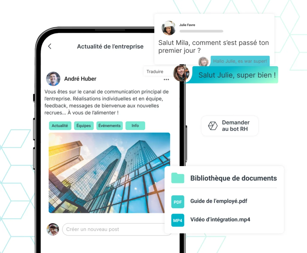 Fil d’actualité, accès en libre-service aux documents, outil de chat mobile pour faciliter les échanges… Favorisez la transparence grâce à la communication en temps réel.